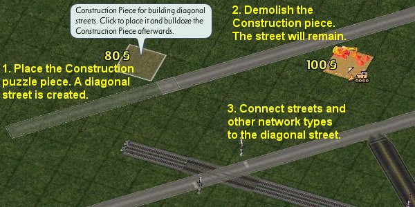- Diagonal x Diagonal transition. In order to join, the OneWayRoad section of network must be two tiles width.