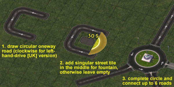 Note: for any junction or intersection involving onewayroad: the onewayroad tool must be drawn properly in the correct direction in relation to any adjoining networks. If in doubt, please experiment.